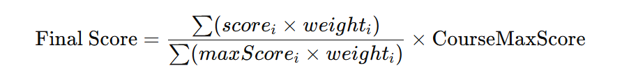Final Vote = (Sum of (user score × weight)) / (Sum of (max score × weight)) × Final Score Scale