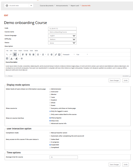 This module will disply a structured info page for the course: