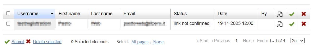 You will then be able to approve or delete the user